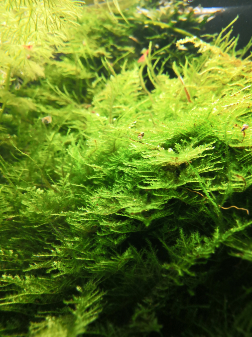 Similaire à la mousse de java mais plus dense et ramifiée (= sapin de noël) , permet de réaliser des boules tombantes sur les pierres/branches/racines)