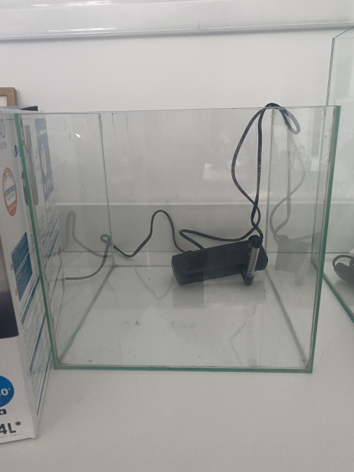 Aquarium cube CIANO - avec pompe Bords polis et biseautés Capot en plastique Contenance : 14L Dimensions : 25x25x26,6 centimètres