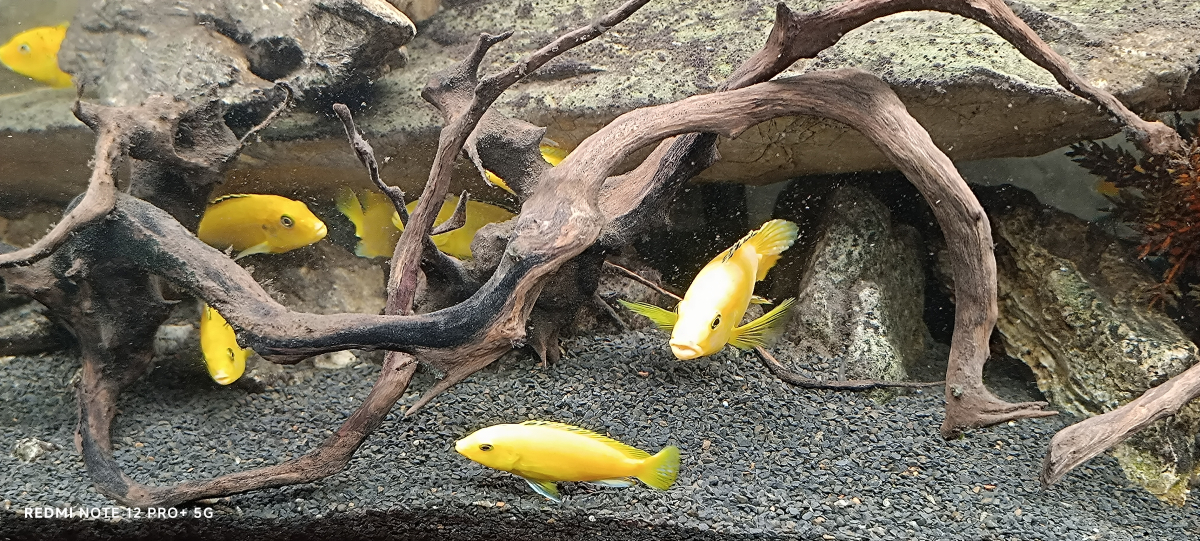 Donne en 1 lot 20 cichlide jaune quelques adultes et les leurs bébés