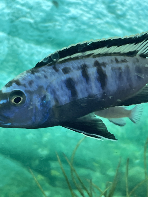 Jolie cichlide du lac Malawi a un prix très rentable Taille : 7-8 cm Nageoires en très bonne état Il est en meilleurs santé que dans les animaleries avec une alimentationalgue etépinards et moins cher pouvant coûter entre 20-25 euros livraison gratuite en moins de 5 jours