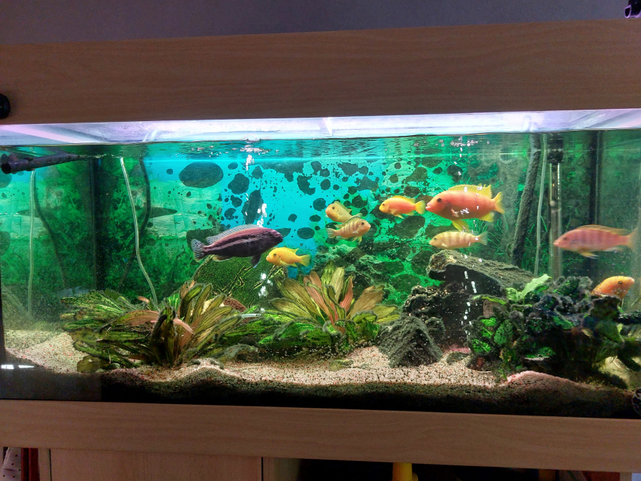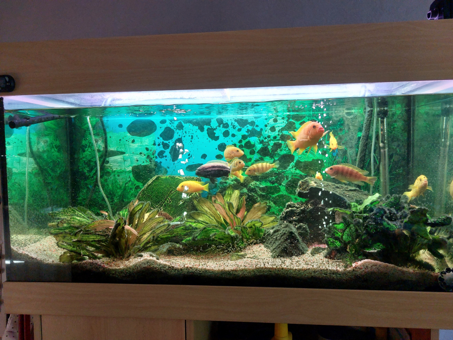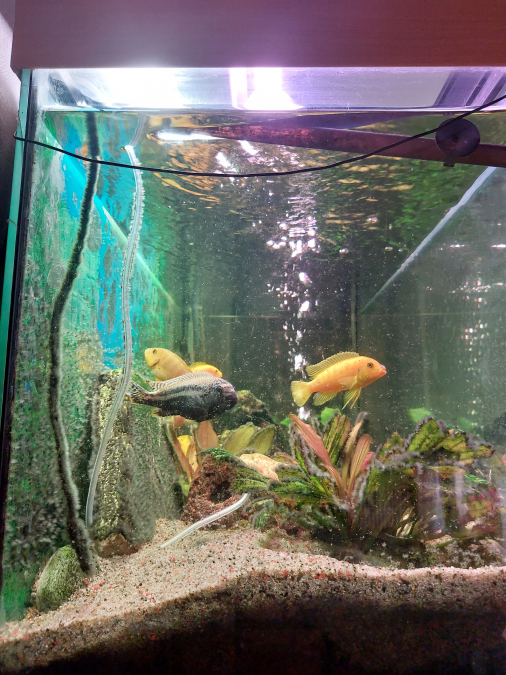 Bonjour, Donne contre bon soin des Cichlidés du Lac Malawi (13 dont Labidochromis Jaune / Pseudotropheus saulosi jaune à rayures / Melanochromis auratus taille entre 6 et 12 cm) et un poisson de fond (Ancistrus). A venir chercher sur place à mon domicile.