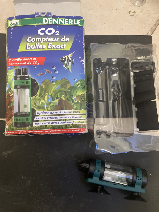 Compteur à bulles marque Dennerle J’ai aussi le système complet avec compteur à bulle intégré Détendeur Bouteille 500 g Totalement neuf 125€ Compteur de bulles : 12€
