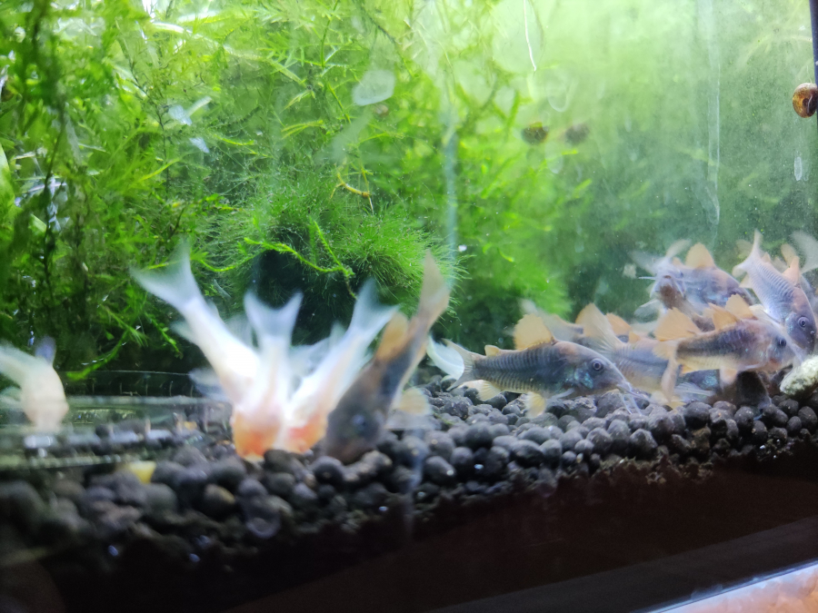 Corydoras aeneus et albinos 1,5 € pièce 10€ les 10 Environ 2 cm Échange possible contre ramirezi recherche 1 femelle bleue et 1 normale), cacatuoide recherche 1 femelle.