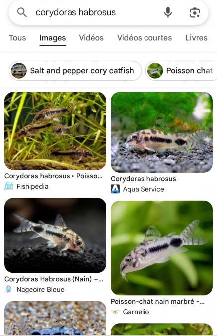 Vend corydoras habrosus nain née dans mon bac 20euros les 6. Parents Achetés à un éleveur.