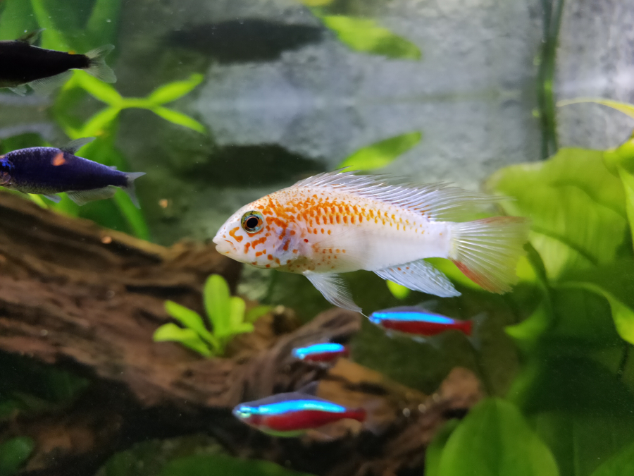 Bonjour, Afin d'équilibrer la population de mon aquarium communautaire je vends un couple formé d'Apistogramma Viejita de sélection Gold. Ils sont à taille adulte depuis 2 ans et la femelle a déjà fait aboutir deux reproductions. Mon eau a pour paramètres Gh5 ph6,4 25°C très oxygénée. Je vends le couple (indivisible) a un aquariophile qui saura en prendre soin.