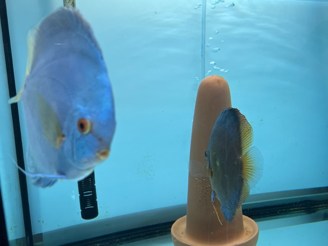Cause déménagement : A vendre couple Discus paire (Provenance : S.G.Discuscoltura) Blue Diamond + Blue cobra Taille environ : 12cm / 14cm Prix : 150,00 euros A retirer sur place (ligne 14 Saint Ouen)