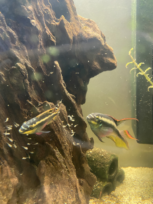 Bonjour Je donne mon couple de Pelmato ainsi que les juvéniles ( 3 semaines) Très beaux poissons mais un peu trop territorial en période de frais