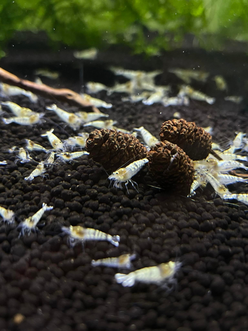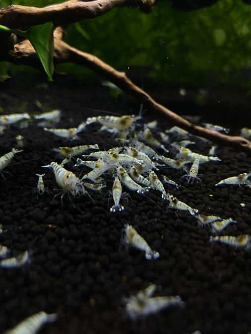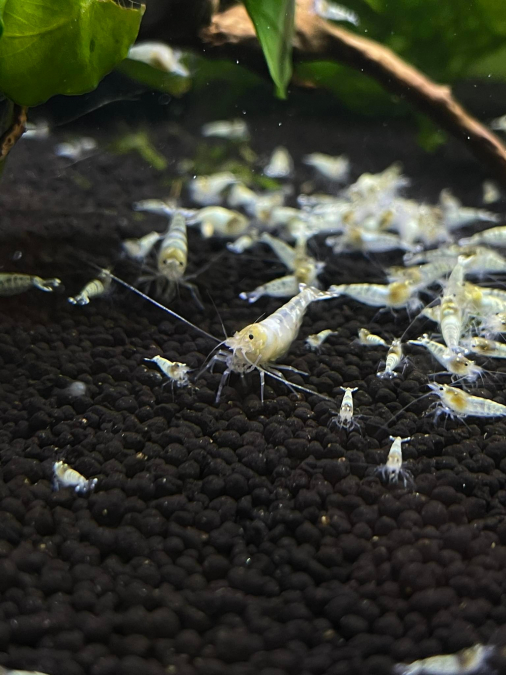 Crevette Caridina Ghost Pinto. PH: 5.5-6 / GH : 5 / KH : 0 / Conductivité 400 µs Sol technique Dennerle Shrimp-King et eau osmosée reminéralisée Vendu par groupe de 10 minimum. Photo réel de mes bacs. Envoi possible ou remise en main propre selon mes disponibilités. Voir mes autres annonces pour d'autres crevettes ou accessoires pour celle-ci.