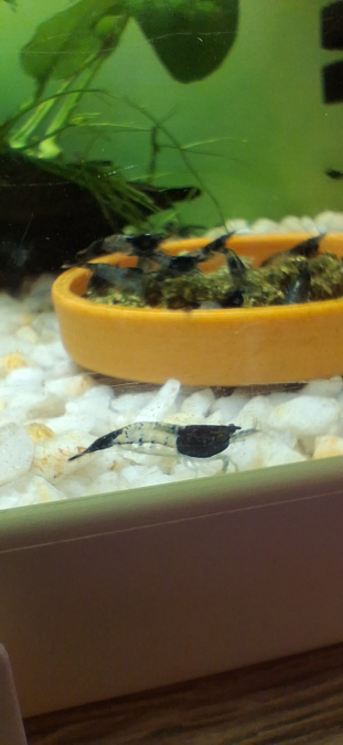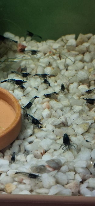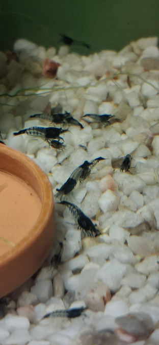 Crevettes néocaridina rili carbone Black 30€ le lot de 10 crevettes envoi possible suivant dispo toutes les semaines photo de mon bac maintenu 100% eau du robinet PH7 à 7.5 Rajouter 2€ sur les frais d'envoi pour une chaufferette suivant températures