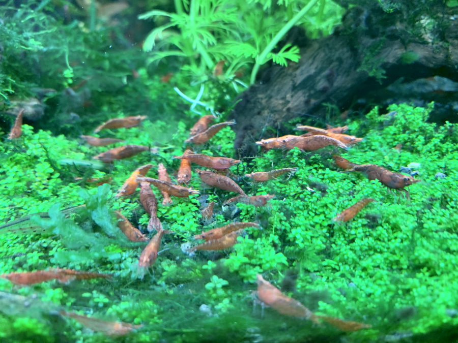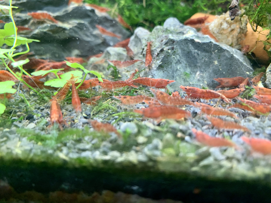 Belles crevettes d’un rouge vif. Gêne néon présent, très belles marbrures.