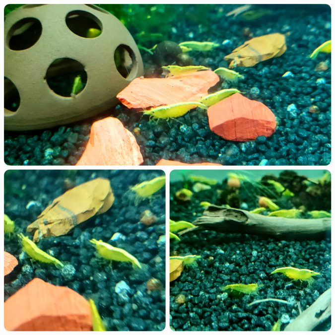 11 crevettes yellow néon de bonne taille pour 30 euros