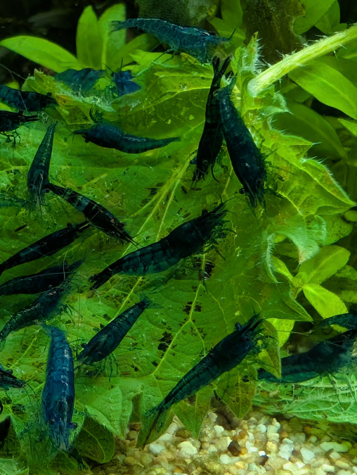 Bonjour, Je propose des crevettes Neocaridina davidi bleues.