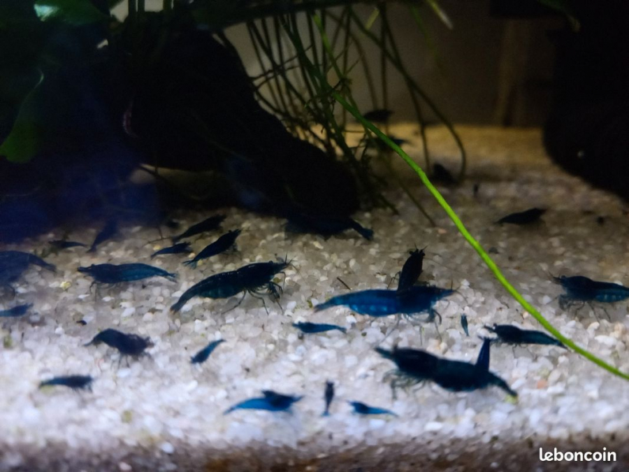 Vend crevettes bleue très belle couleur vivent en eau du robinet prix : 30€ Le lot de 10 crevettes LES PHOTOS SONT CELLE DE MON AQUARIUM ENVOI POSSIBLE possible chaufferette 72H à 2€ Pour tout renseignement vous pouvez me contacter au 0780429505