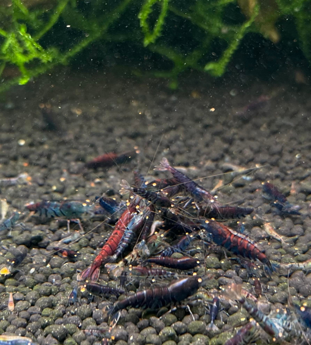 Crevette Caridina Tiger Blue Orange Eyes. PH: 5.5-6 / GH : 5 / KH : 0 / Conductivité 450 µs Sol technique Dennerle Shrimp-King et eau osmosée reminéralisée Vendu par groupe de 10 minimum. Photo réel de mes bacs. Envoi possible ou remise en main propre selon mes disponibilités. Voir mes autres annonces pour d'autres crevettes ou accessoires pour celle-ci.