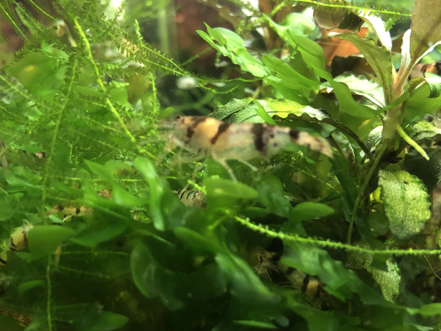 Crevettes caridina “ Raccoon Tiger “ sur sol neutre ( basalte concassé “