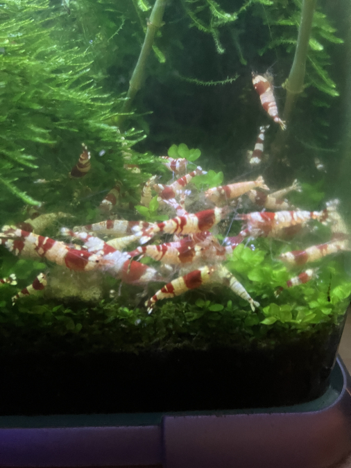Belles caridina red crystal nées at home sur sol technique, 23°C, pH 6,5, gh 3 , kh 0