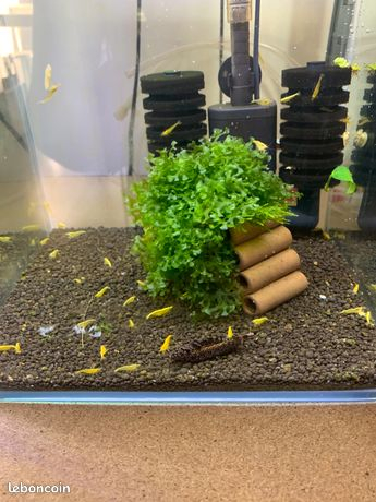 Bonjour, je vend des crevettes neo caridinas Yellow néon. Ce sont des crevettes avec un jaune intense avec une ligne jaune très prononcée sur le dos. Elevé dans mes aquariums. Crevettes très facile de maintenance sur sol neutre et eau du robinet. 25 euros les 10+1 45 euros les 20+2 60€ euros les 30+3 N'hésitez pas à me contacter pour toutes vos questions. J'y répondrais avec plaisir.