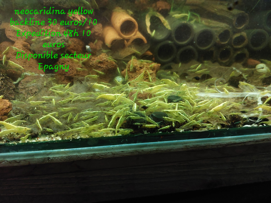 Bonjour, J'ai des lots de tres jolies, neocaridina yellow backline en disponibilités, par lot de 10, 20, 30 comme vous le souhaiteriez. Expedition possible ou a prendre sur place à Epagny, prés d'Annecy. Je les propose à 30 euros/10 crevettes