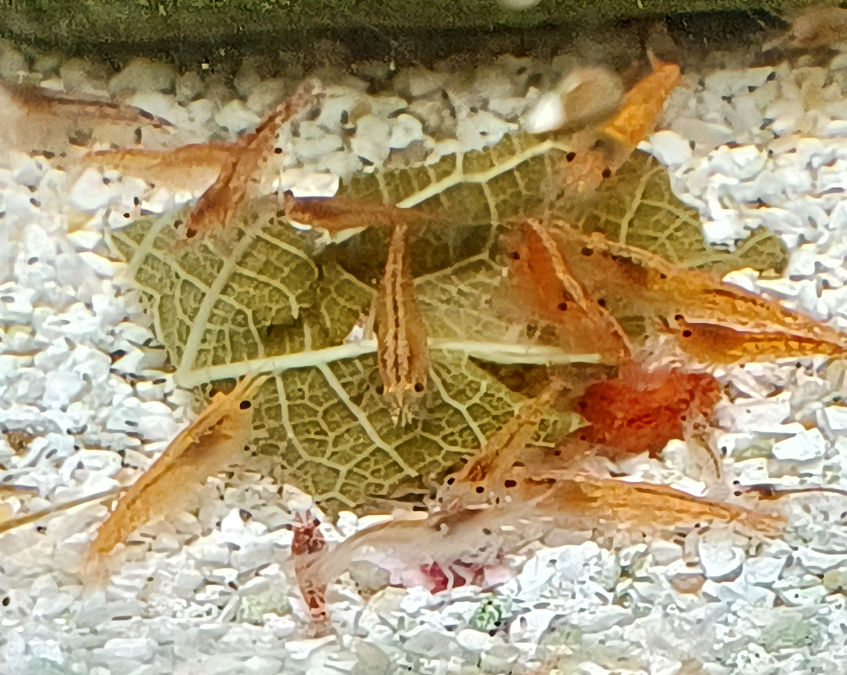 Lots de 12 crevettes au choix ou en meltinpot Red cherry; Rilli black carbon ; Rilli rouge ; Rilli orange; Yellow fire