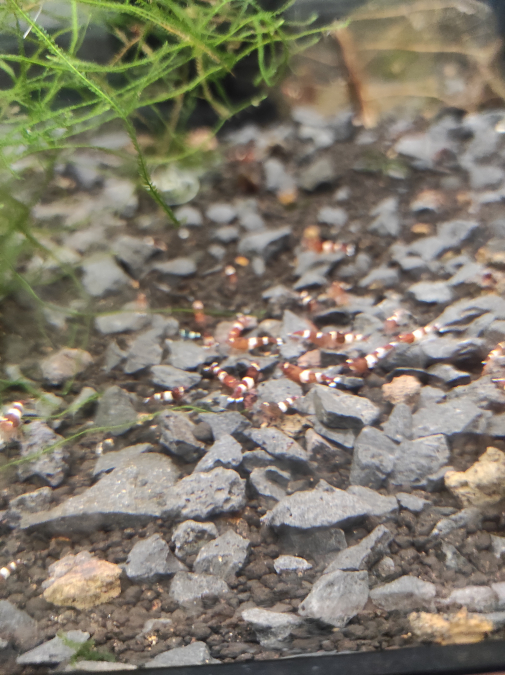 Vends 2 lot de crevettes red wine, taille de 1cm Prix: 40€ les 10 crevettes