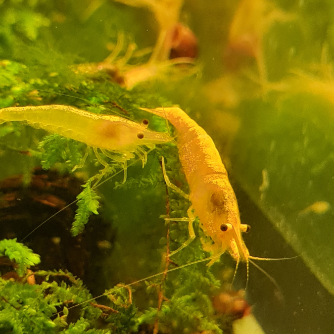 Crevettes neocaridina yellow néon élevées à l'eau du robinet. 10 achetées 2 offertes. Livraison possible par colissimo 48h du lundi au mercredi. Paiement paypal.