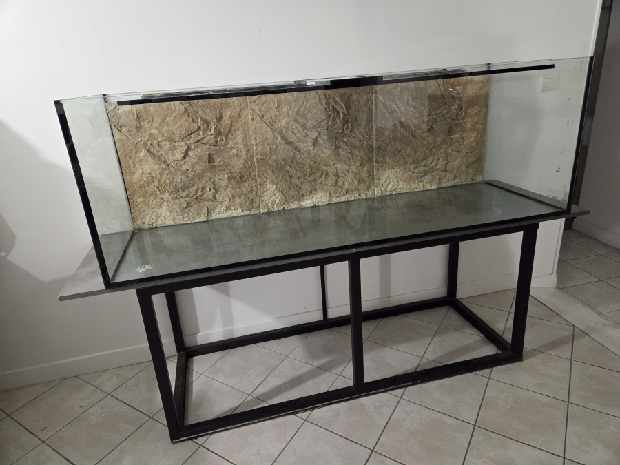 Je vends cet aquarium de 648 litres avec son support robuste. Parfait pour créer un bel espace aquatique pour vos poissons ou un joli terrarium - Type de produit : Cuve avec support - Adapté pour : Poissons, - Capacité / Volume : 648 litres (180×60×60) - Matière : Verre et métal Aquarium spacieux, support stable N'hésitez pas à me contacter pour plus d'informations ou pour convenir d'une visite Tarif négociable