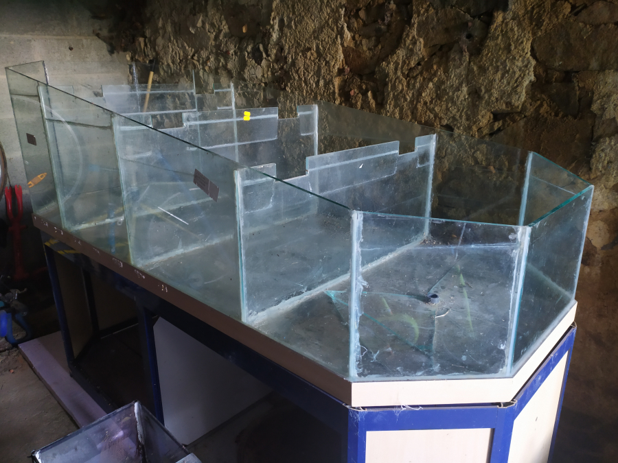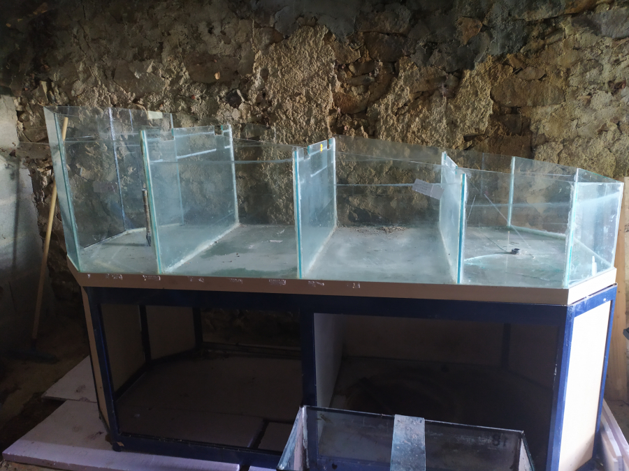 Bonjour Je vends une cuve d'animalerie compartimentée en 4. Dimensions 200 cm de long, 80cm de large, 60-30cm aux deux extrémités de haut, Attention la vitre du fond du dernier compartiment est à réparer.
