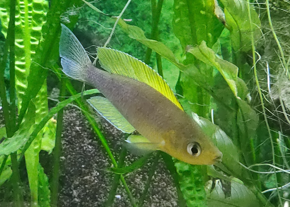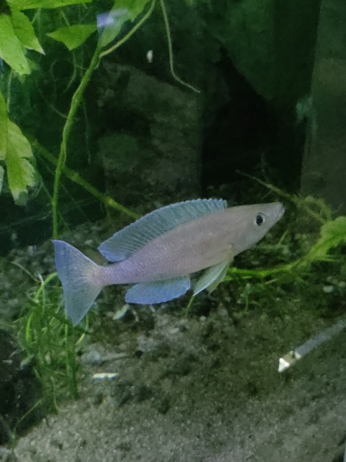 Un poisson pas courant du tout. Je l'ai reçu à la suite d'une erreur de listing, et finalement je ne suis pas mécontent ! C'est un cyprichromis du groupe Jumbo, il lui faut donc des bacs de taille suffisante (façade supérieure ou égale à 1,50m) et évidemment une maintenance en groupe. Sinon, comme presque toujours il y a deux formes, une jaune (voir photo) et une bleue. La forme bleue est moins colorée que la forme jaune mais est complètement différente. Les femelles ont les nageoires impaires jaunes, un peu comme le "Dwarf Jumbo" mais ils sont un peu plus grands. J'ai quelques jeunes en pousse, de quoi faire un groupe sympa pour commencer.