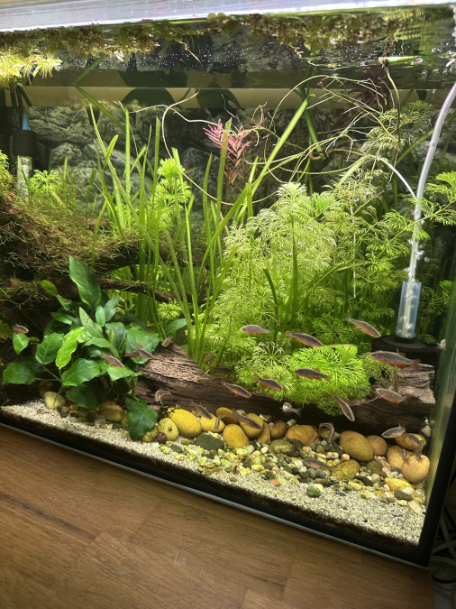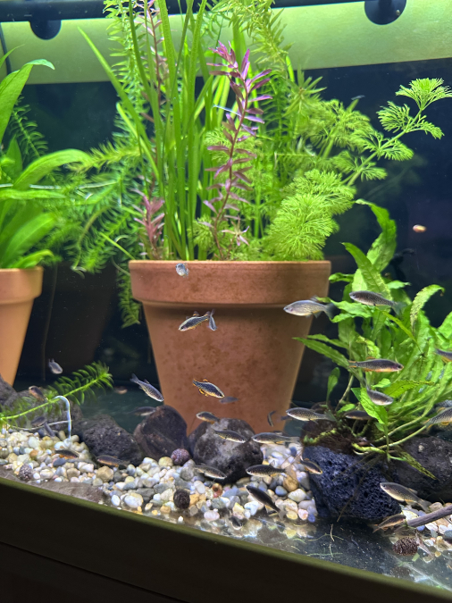 Je vends quelque-unes de mes reproductions de Danio Galaxy (anciennement Microrasbora Galaxy). Ils sont tous nés chez moi dans une eau 100% du robinet (de Rodez) donc bien acclimatés et en parfaite santé. Ils sont nés début mai et se reproduisent déjà. Possibilité de faire un prix sur un lot. Uniquement contre de très bons soins et dans des installations adaptées.