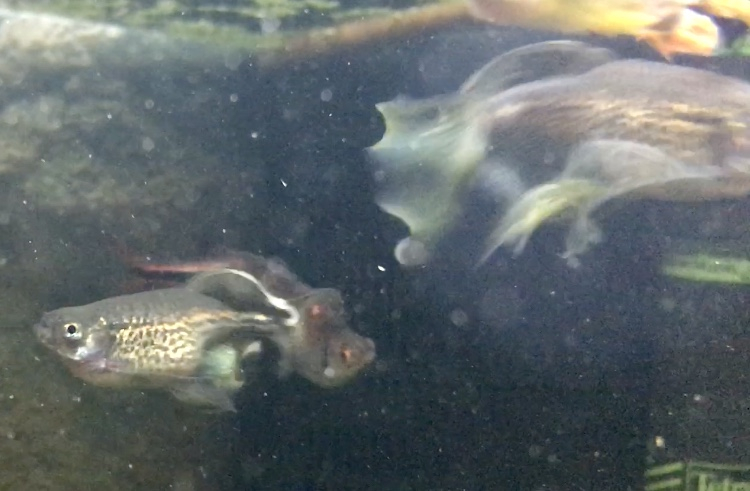 3 danios , 1 mâle 2 femelles (1 doré longiligne, 2 plus grosses surtout le ventre et plutôt argentées) Perlés à voiles (netteté des photos difficiles à obtenir car poissons très dynamiques)