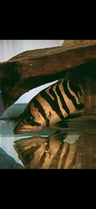 Je vends une perche du tigre Origine Asie Taille 15 cm en pleine croissance Eau douce 25/26 degrés Taille adulte :30/40 cm Pour les connaisseurs ...