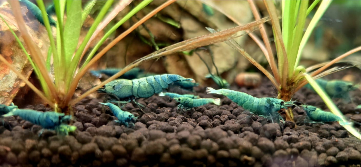 Vend crevettes Deep Blue Bolt. 45€ les 10 ou 5€ l'unité. Remise en mains propre à Commequiers. Enlevées sur sol technique ; pH 5,5 ; 250-300 μs ;GH 5 ; KH 0
