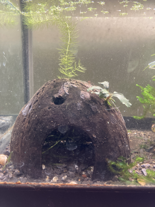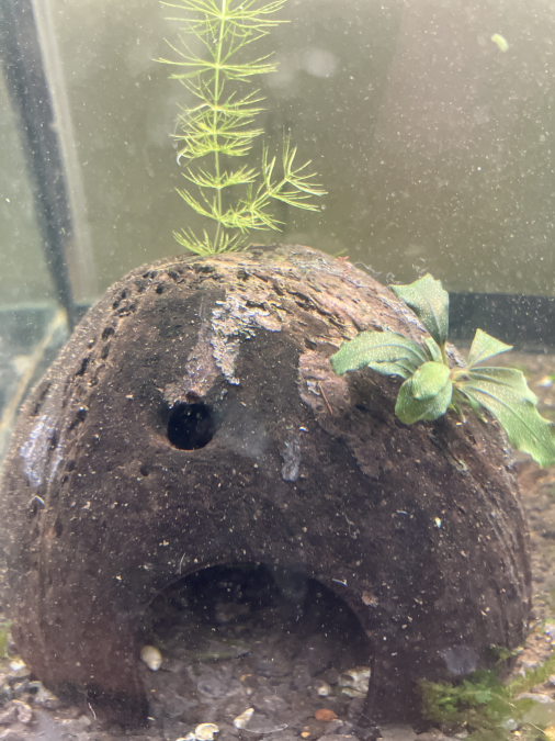 Demi noix ? de coco faite par moi même avec 1 Bucephalandra qui s’est fixée dessus,la bucephalandra tropical est une plante epiphytes de bornéo. J’ai créé une «porte caverne» très appropriée à la reproduction des Ancistrus et de beaucoup de Cichlides nains. Trois petits trous sur le dessus ou sort une plante demersun. 10€ Nanterre 92.