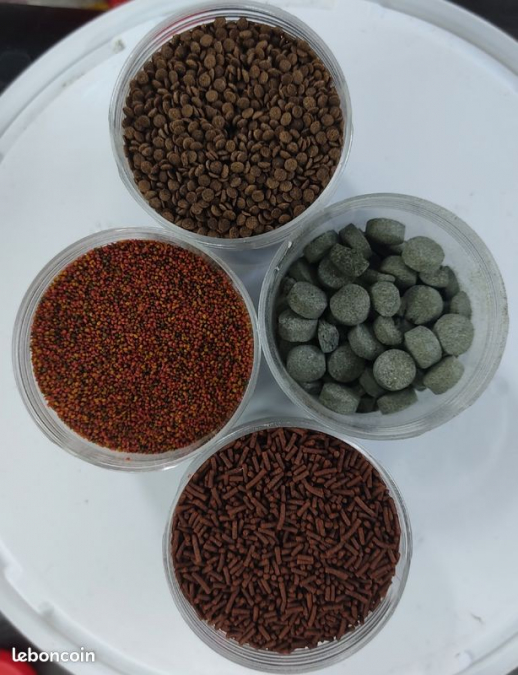 Nourriture crevette/écrevisses en stick 100g pour3€ Nourriture poissons en tous genre même petites bouches en grains 100g pour3€ Nourriture poissons de fond corydoras en chips 100g pour3€ Nourriture pastille de fond spiruline 100g pour 4€