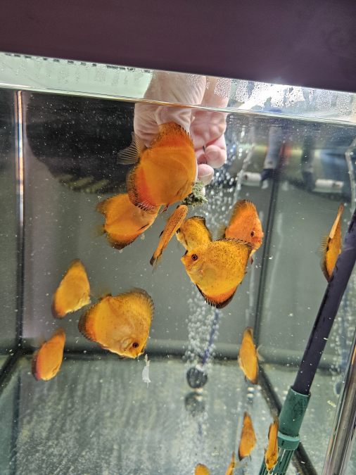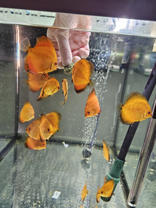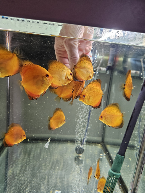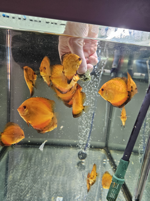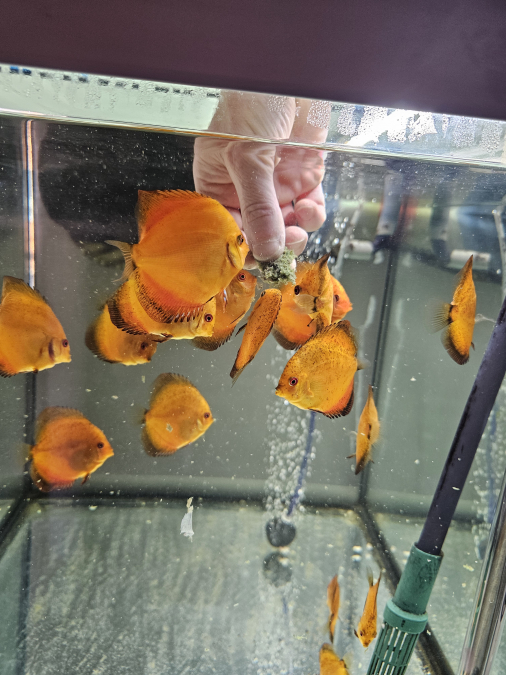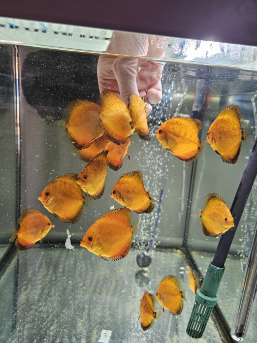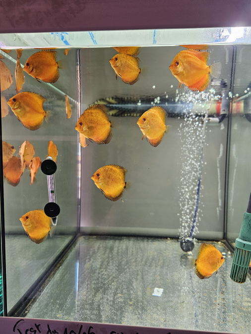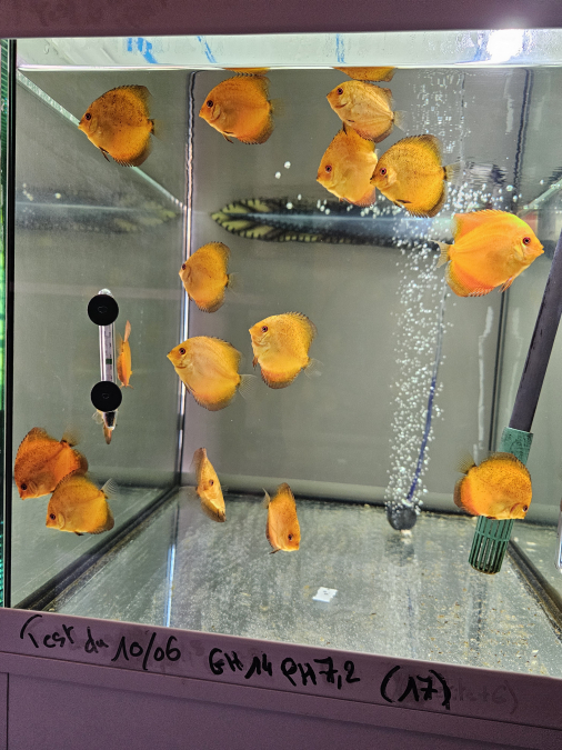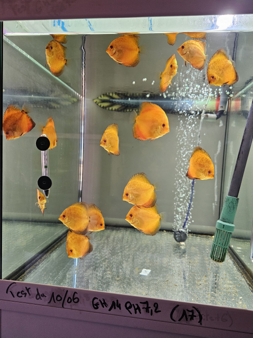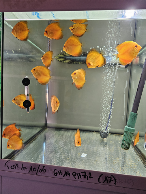 Échange jeunes discus Nées chez moi Je précise que les jeunes discus ont les nageoires droite et gauche mal formé mais sans gêne pour eux Les photos sont récentes Uniquement échange, 1 discus contre 4 boîtes de 400 gr PÂTÉ bœuf pedigree