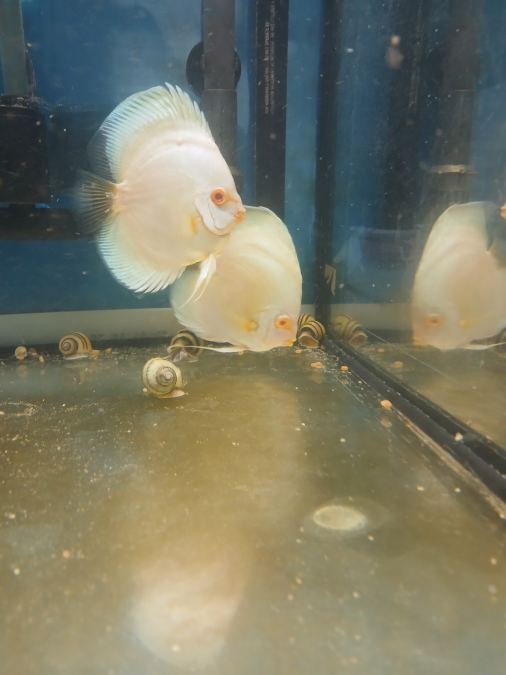 Discus Platine Albinos Très Rare 2 male et une femelle en taille de 11/13 cm Discus de tres grande qualiter .. Plus de renseignement et prix sur demande le prix de vente n est pas de 1 euros ...