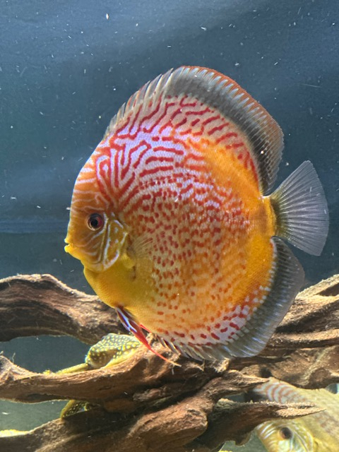 Discus nés le 01/03/25 Souche Europe , couple reproducteur certifié Videos : Ponte / nage libre / mois par mois Femelles : 12/13 cm 8 pces Males : 14/15 cm 6/8 pces Cdlt