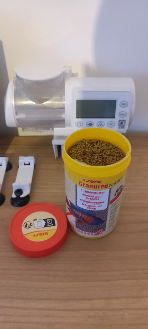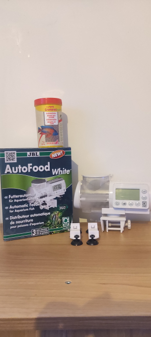 Bonjour, Je vends ce distributeur automatique de marque JBL, très bonne état, fournis avec les pile et un contenant de marque Sera en granulés contenance 100%. Cordialement