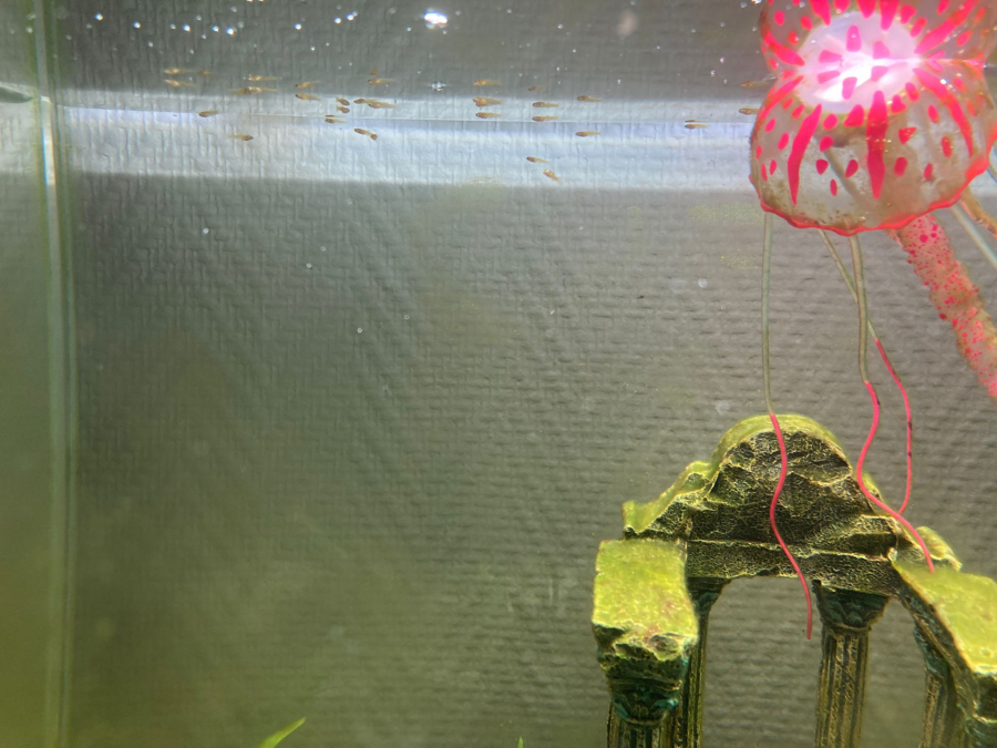 Don gratuit d'alevins Guppys ( environ 30 bébés) ils viennent d'une maman guppy rouge orange ( type feu) et d'un mâle type feu. Le sexe de l'animal non connus. À venir chercher sur place.