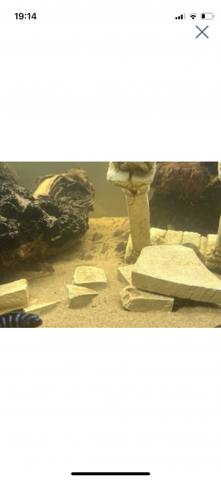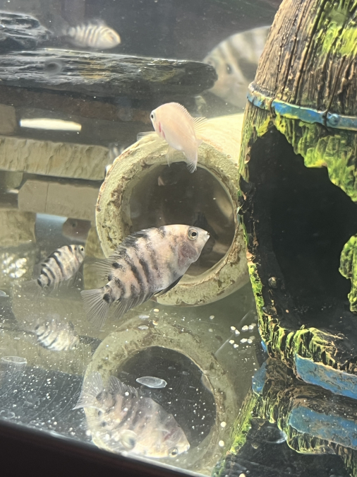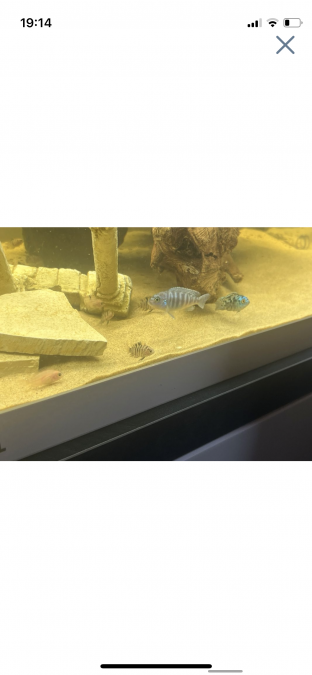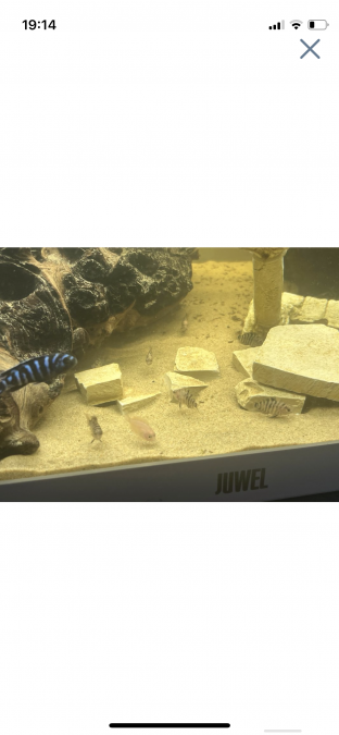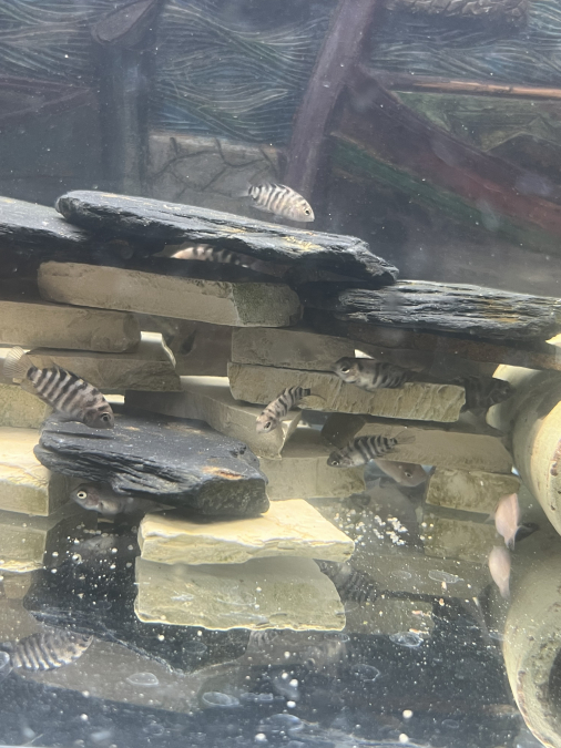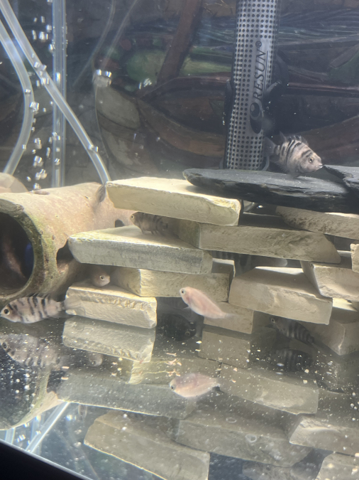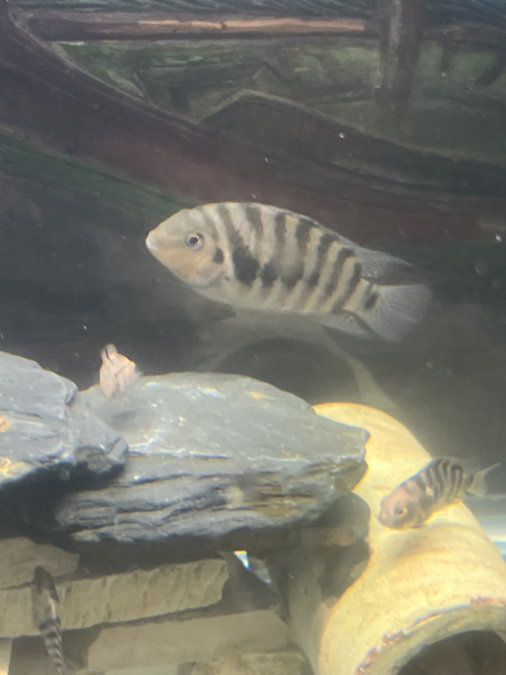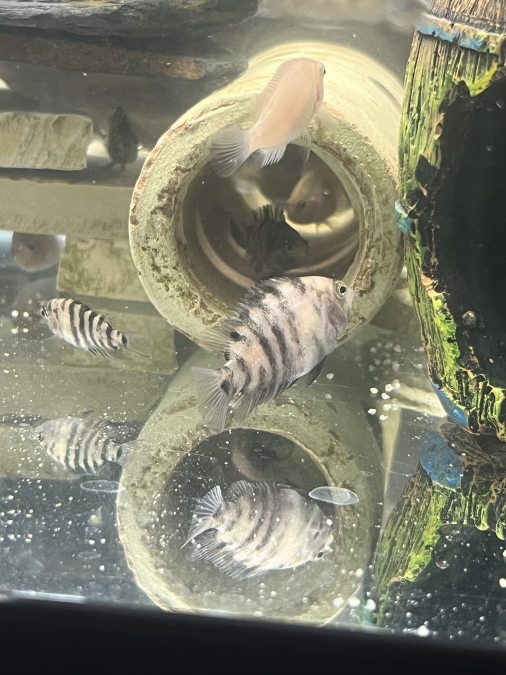 Alvins (1 à 3 cm) ( cichlidés américain « nigrofasciata » ) ainsi qu’un adulte restant ( 5 à 7 cm ) à venir chercher sur place