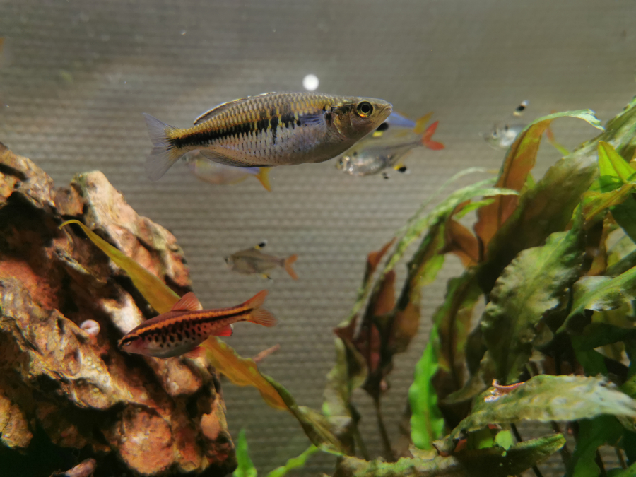 Donne une femelle Melanotaenia boesemani, étant seule dans mon bac elle serait mieux avec d'autres individus de la même espèce ou d'autres Melanotaenia.