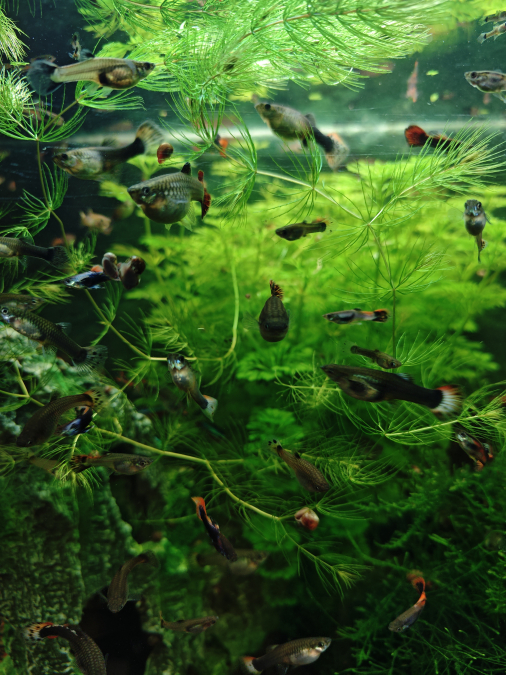 Suite à de nombreuses naissances, je donne des guppys mâles et femelles. Échange possible contre micro fish Également disponible cabomba, mousse de java et ceratophyllum