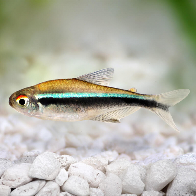 Donne lot complet de poissons d'eau douce chaude, comprenant : - 6 néons noirs (Hyphessobrycon erythrostigma) - 3 poissons de fond (Corydoras léopard) -1 poissons lave-vitre de 13cm (Hypostomus placostomus)