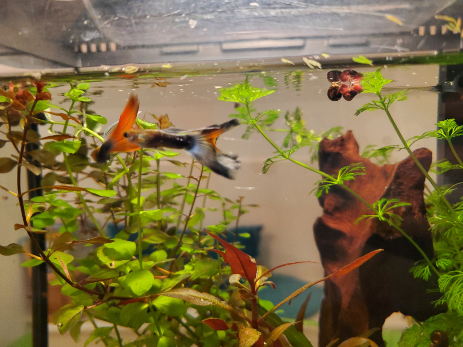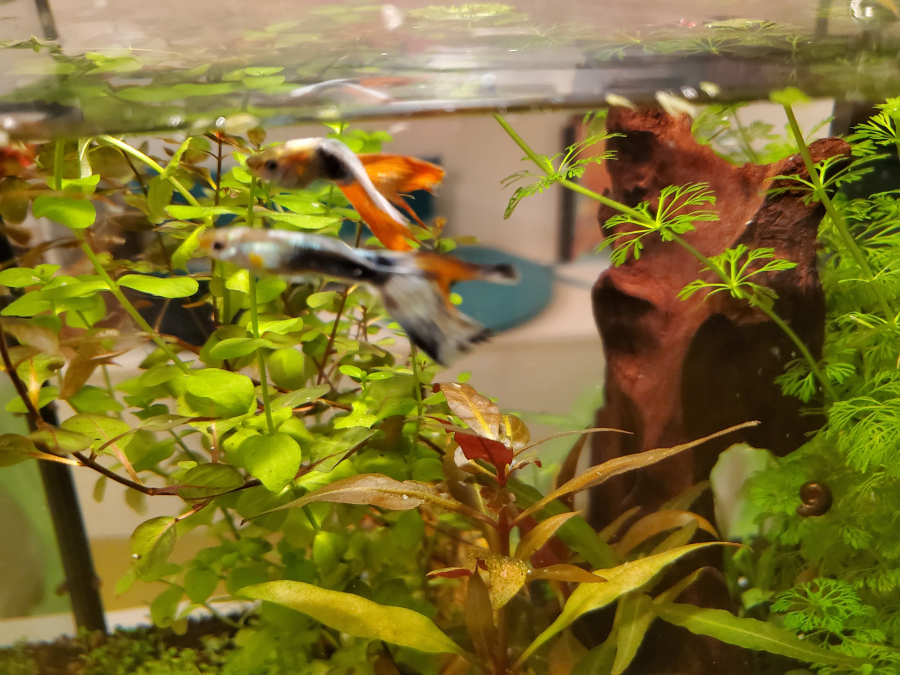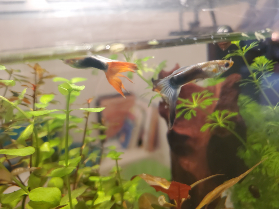 Je donne 2 guppys mâles adultes Un queue rouge l'autre queue bleue Je voudrais récupérer l'aquarium pour mes bébés endlers Ils sont seuls dans l'aquarium et seraient bien plus épanouis avec un groupe de guppys dans un grand bac Remise en main propre sur caluire / lyon