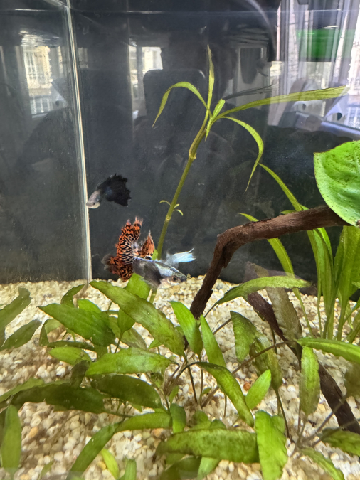 Je donne 4 très beaux guppys males de differentes couleures.