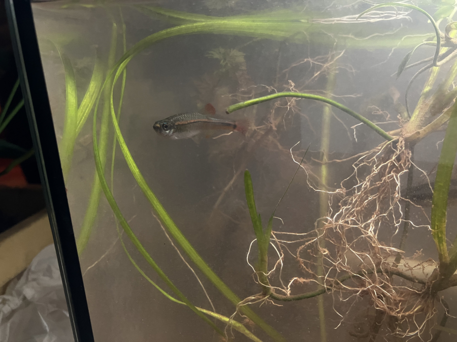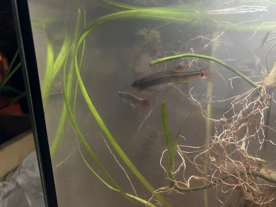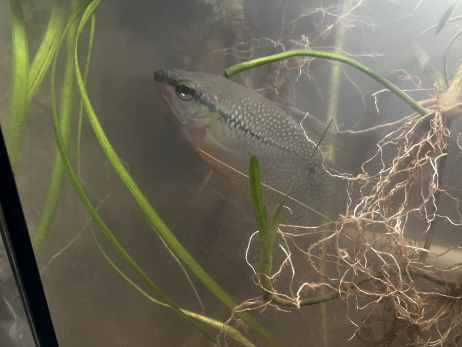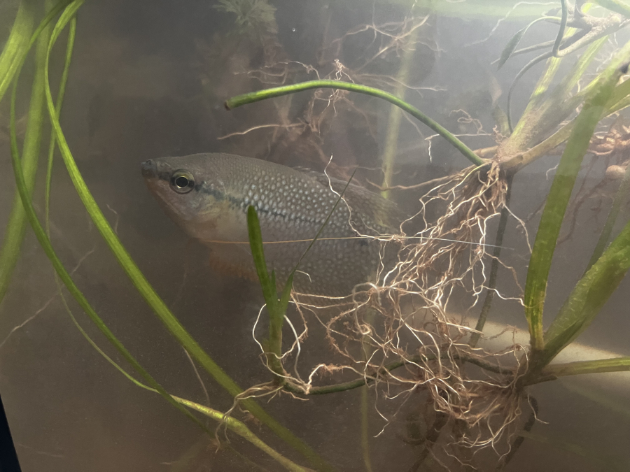 Donne 1 guarami perlé, 3 poissons rouges et gris et un poisson nettoyage de fondaquarium