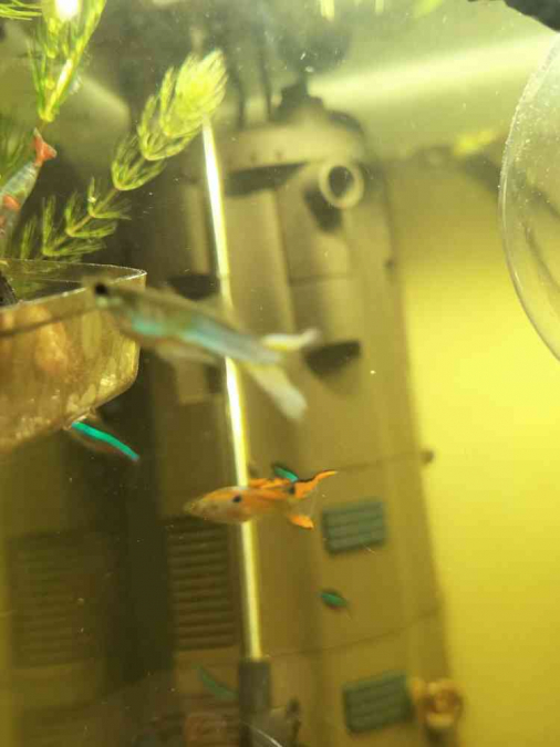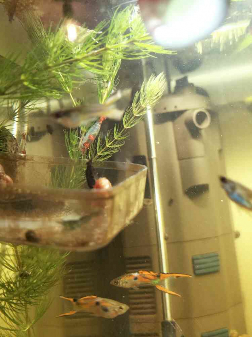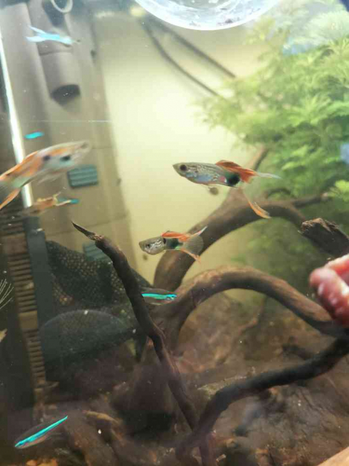 Bonjour ! Je donne mon banc de Guppys Endler avec : ~une dizaine de mâles ~environ 5 femelles (dont certaines gravides) Et les bébés qui vont avec. Je ne sais pas combien ils sont en tout. Je les donne juste car je souhaite un aquarium plus calme. Ils ont de super couleurs et comportements ! J'ai rajouté quelques mâles récemment pour eviter la consanguinité, vous n'aurez donc pas de soucis à ce niveau là . Desolée pour la qualité des photos, mon téléphone n'arrive pas à suivre. J'ai principalement des oranges avec des petites taches et des bleus/jaune ! N'hésitez pas à me demander pour plus d'infos Je les donne à qui souhaite venir les chercher :) (et m'aider à les pêcher) Mélina