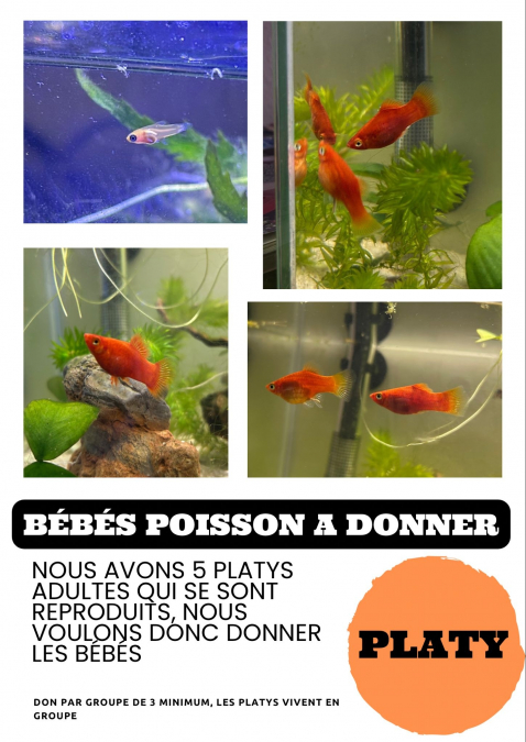 Donne alevins poisson platy Rouge nés début janvier remis en main propre