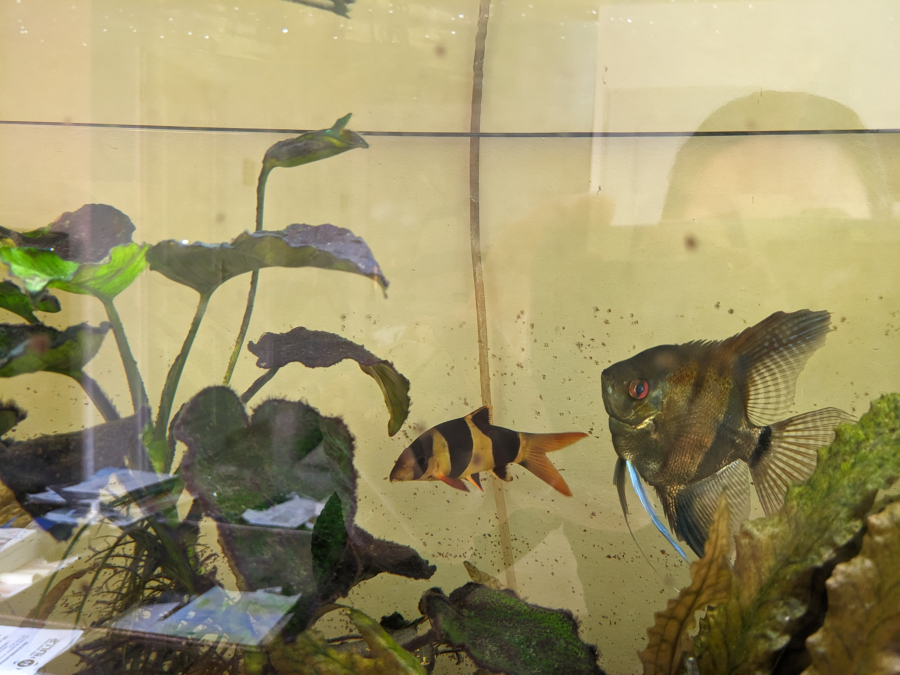 Botia adulte, en bonne santé, âgé de 2 ou 3 ans. Vis seul alors qu'il lui faudrait un groupe de la même espèce (ou un retour en Thaïlande ?) mais mon aquarium de 250 litres est trop petit pour cela.