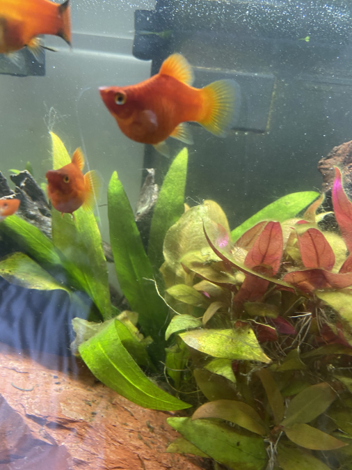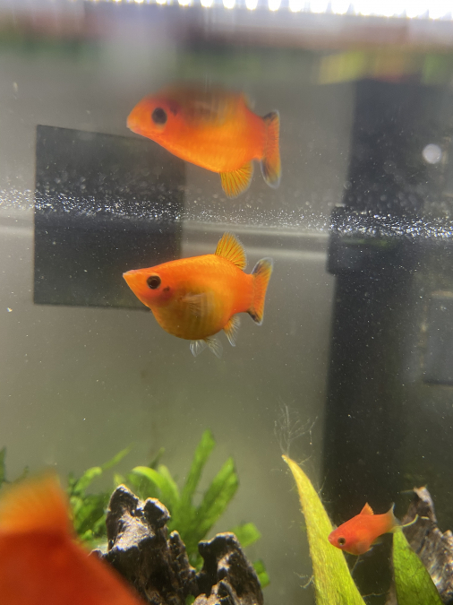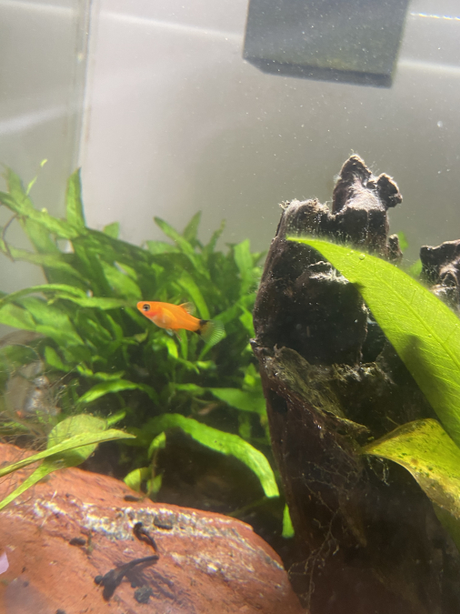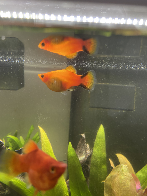 J’ai des femelles platys toujours enceintes et j’ai un aquarium limité de 60L. Il faut donc que je trouve des personnes voulant des bébés platys car je suis dépassée par les alevins. -> les bébés sont oranges avec la queue noir comme leur maman ( voire photo ) -> Vous pouvez aussi m’en demander des rouges ( voir aussi photo de mes platys femelles rouges) Mes platys sont tout le temps enceinte donc le « stock » se renouvelle n’hésitez pas à me demander ce que vous désirez et bien sûr je les donne que contre des bons soins.